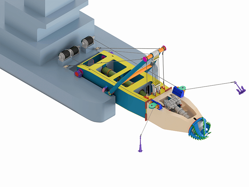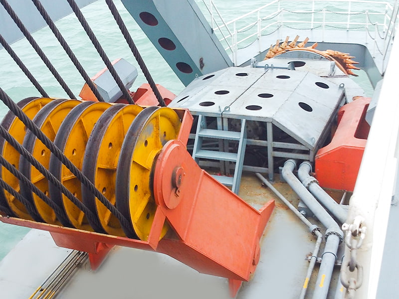 这套先进的传动系统广泛应用于各类疏浚场景:在港口航道维护中,可高效处理包括淤泥、黏土、砂砾及中风化岩在内的复杂地质;在人工岛建设中,其稳定的动力输出保障了吹填作业的连续性;在河道生态治理中,精准的转速控制实现了对底泥的清洁疏挖。