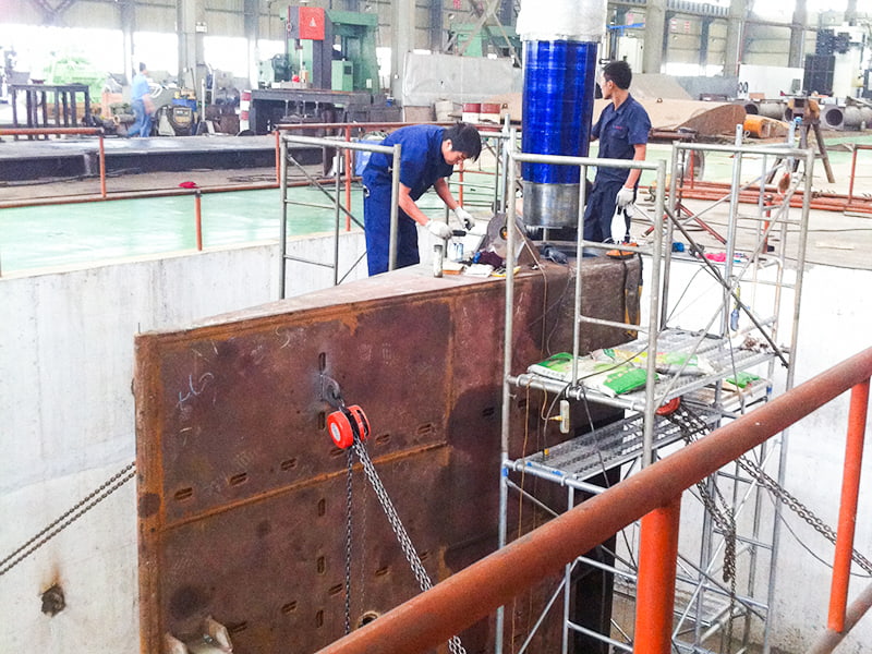 三羊公司提供的铲型舵、襟翼舵、导管舵等能满足多种船舶对航速及操纵性的需要,可生产最大舵叶的重量为50T。我司和哈工程合作设计制造襟翼舵等新型推进设备,并申请专利。◎可根据用户的要求或图纸设计制造