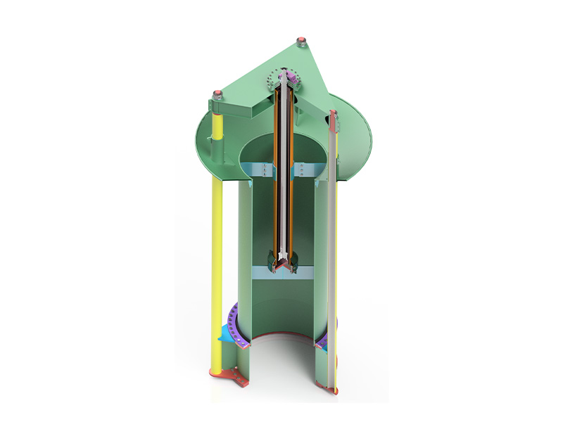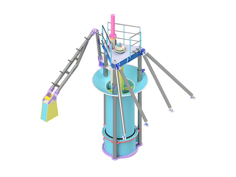 挖泥机溢流系统通常由固定的外部部分和滑动的内部部分组成,均为管状。运动部分的顶部是一个圆锥形或矩形堰,其目的是获得非湍流、均匀的流动以促进沉降。移动部分通过连接到固定部分的液压缸来升高或降低。